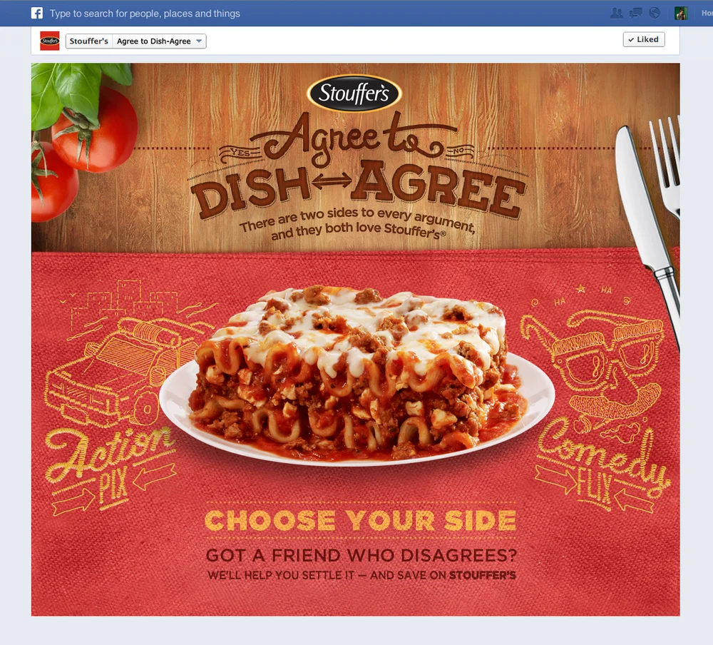 The program resulted in Stouffer's jumping to #1 from #7 in terms of Facebook fan engagement within the frozen food category.